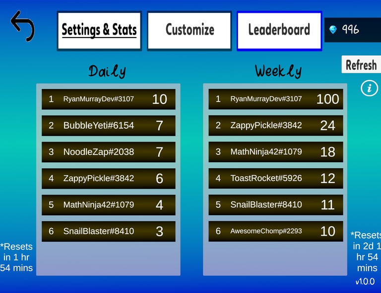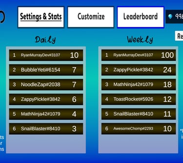Your wins count! Climb the daily and weekly leaderboards.