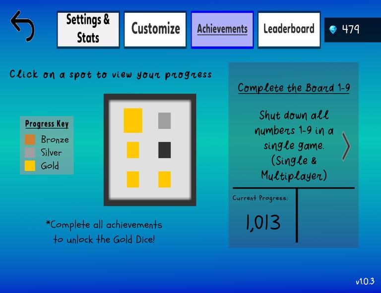 Complete all achievements to unlock the Gold Dice!